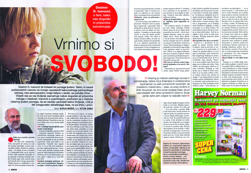 Desimir D. Ivanović iz trideset let pomaga ljudem. Takim, ki zaradi podavestnih vzorcev na mnogih vzpostavlja samokatanega partnerskega razmerja, niso samokazančljki, trpijo blizino čutijo, že podjetje živhe ali spremlja si že tudi nihanje zakončkih odločnosti si začetno le metodo clearing. Ivanović s coachingom, predsvan pa z metodo clearinga, rebritev dušuje, da se naučijo upravljati lastno življenje. »Cilj je moj najbolj funkcionalni (psihiatričnih) meni po uziniu otroki sami.«